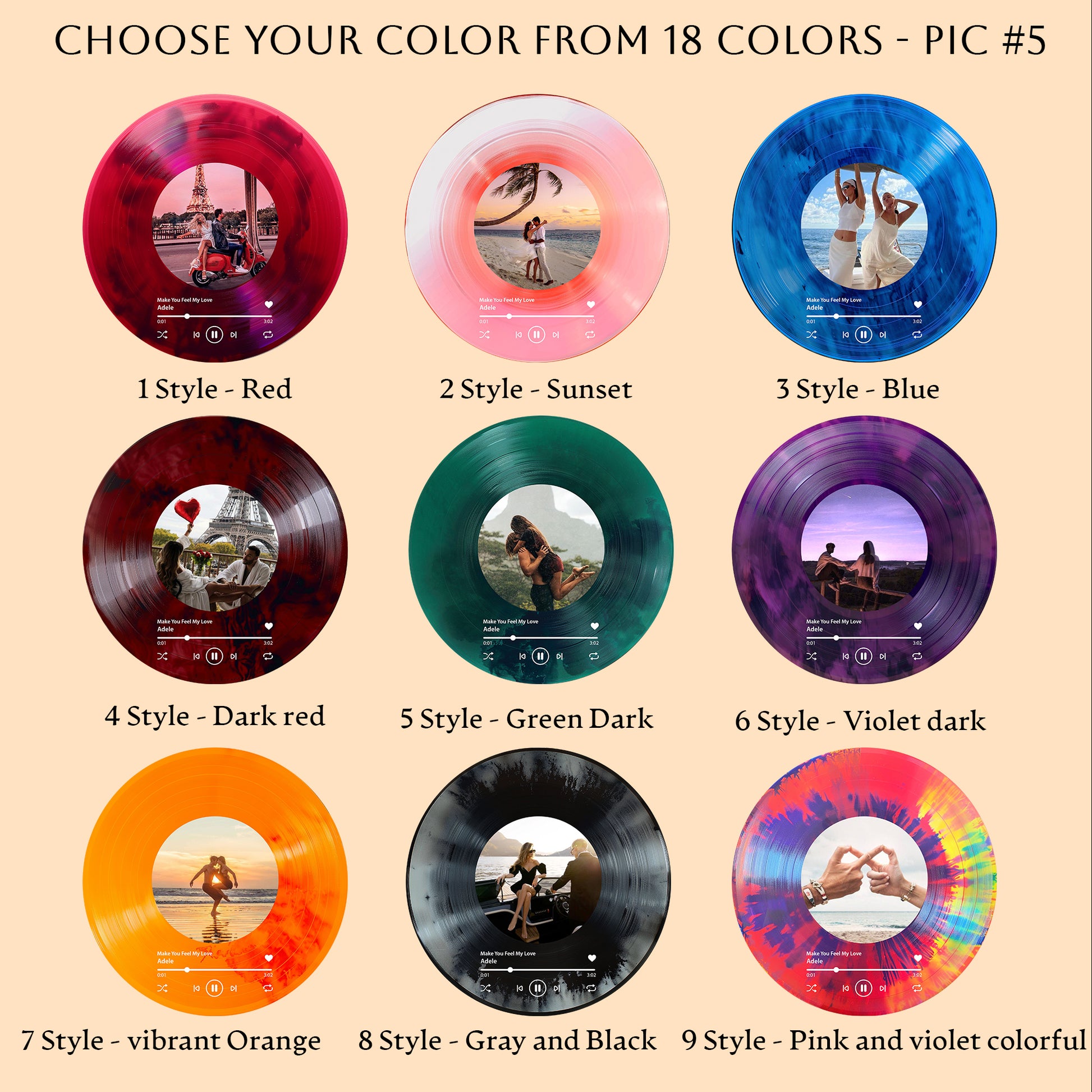 -Choose your color style (see Pic #4 & #5)